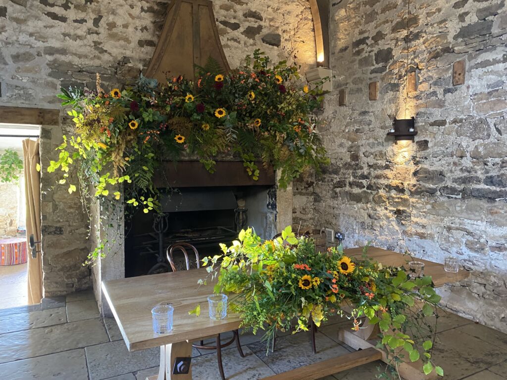 The Long Barn at Healey has a beautiful oak beamed roof, huge candelebra and a massive fireplace – all of which can be enhanced with floral displays to give the real wow factor to your event. Take a look at the information and images in this section and see how we work in harmony with this beautiful space. As the recommended florist for Healey Barn we have all the experience required to make the very best of your wedding venue.