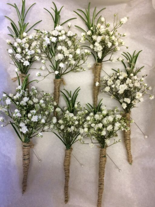 Though small in size compared to the rest of the wedding flowers, button holes and corsages are important elements for the groom and the wider wedding party